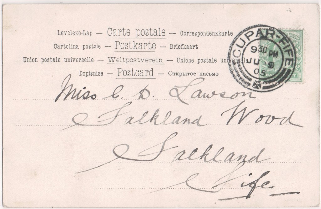 This addressee: George Herbert “Doddie” Macconnell’s friend Archie posted this card to him in Helensburgh on 21 July 1902 from Ardrossan on the Ayrshire coast. At some stage he was a second lieutenant in the Argyll and Sutherland Highlanders of the British Army.