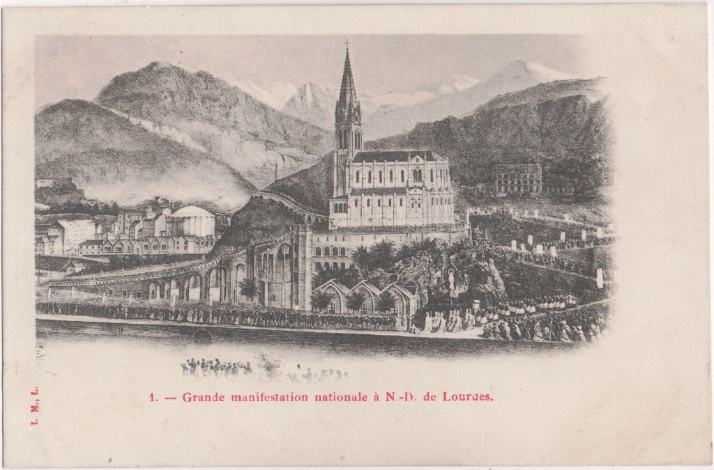 This is often said to be LML of Narbonne in Aude. But there are also cards of Lourdes with publisher’s mark L M Lourdes and Narbonne is 320 kilometres to the east.