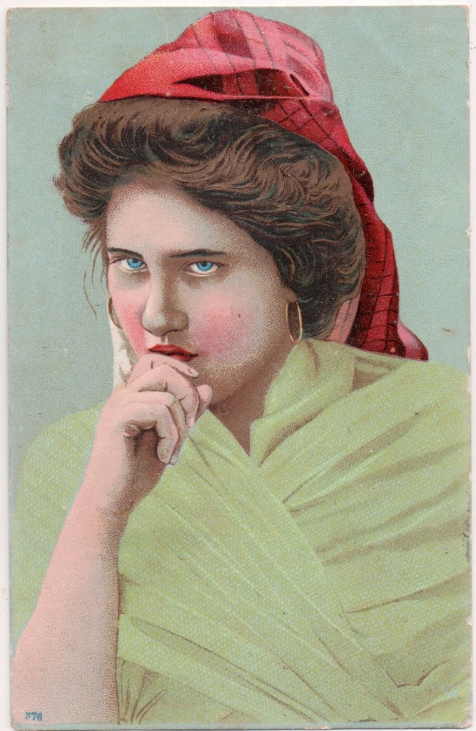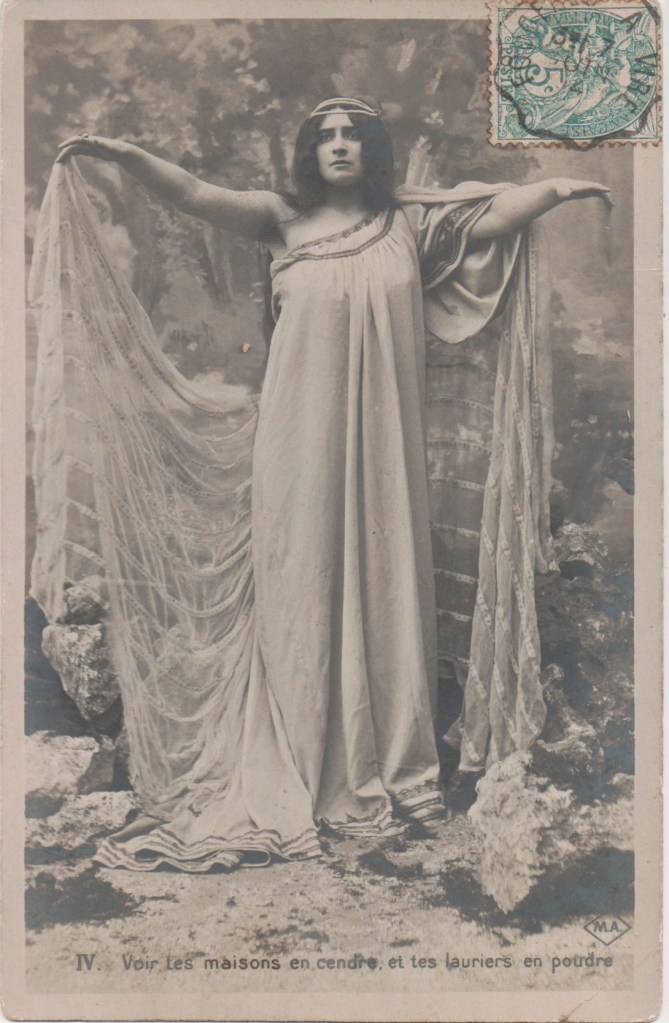 French publisher of numbered series of cards posed by models. David Schofield in Publishers’ logos on old postcards has two cards with variants of this logo. He suggests that they may be different publishers. At least one of his cards is a model in a poetic context which does suggest a single source between that card and mine.